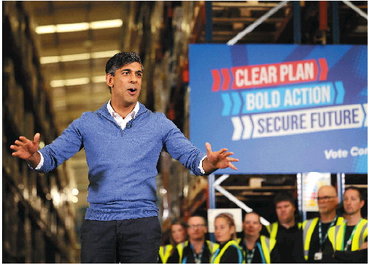 在反对党工党看来,英国经济萎靡不振是保守党执政一大罪状。非法移民管控、公共医疗就医难等也是竞选期间的热门议题。