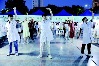 在中医把脉问诊区,医院中医科专家张兵的摊位被围得水泄不通,前来问诊的患者络绎不绝。此次夜市开设了中医药科普宣教区、中医药科普互动区、中医疗法体验区,让居民体验到中药科普互动游戏、中药特色养生茶饮品鉴、中药材展示等惠民活动,将中医药文化与时下流行的“夜市文化”深度融合,创新了中医药文化的传播方式。
