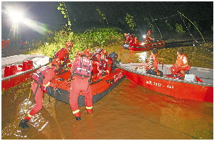 7月6日凌晨,抢险人员在团洲垸开展救援工作。新华社发