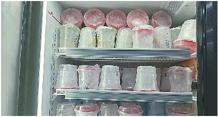 在省城某便利店内,冰杯占据了冰柜一半以上的位置。