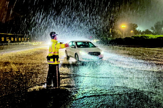 7月8日,枣庄市出现强降雨天气,为全力做好特殊气象条件下道路交通安全管理工作,预防和减少道路交通事故的发生,全市公安交警部门以“雨”为令,迅速启动恶劣天气应急预案,积极采取有效措施,坚守岗位,全警全力,救援抢险,保障群众安全出行。(刘峰 张辉)