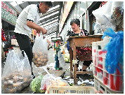 吕有彬在农贸市场购买食材。