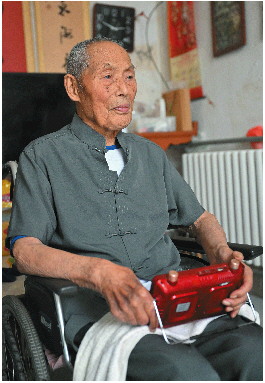 7月3日下午,在菏泽市郓城县张营街道张一村的农家小院里,刘志广在儿女的陪伴下来到门口乘凉。雨后的乡村空气清新,凉风徐徐,刘志广心情很好,他伸出一个手指头说,“我今年01了!”去年刚过了百岁生日的他,笑呵呵地向大家伙介绍着自己的年龄。