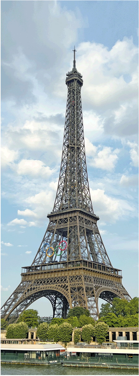 巴黎标志性建筑埃菲尔铁塔挂上了奥运五环。