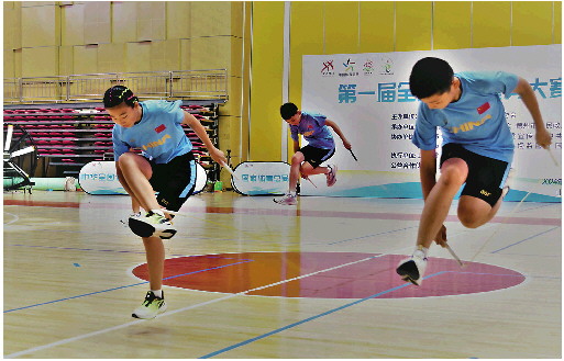 “绳”彩飞扬竞技赛,童年律动筑梦想。7月12日,由国家体育总局、国家体育总会主办,山东省体育局承办的第一届全国全民健身大赛(华东区)花样跳绳决赛,在德州市体育中心体育馆拉开帷幕。济南市莱芜第二实验小学花样跳绳队共15名队员代表学校参加比赛。经过两天的激烈角逐,莱芜第二实验小学代表队共斩获28个第一名,并荣获精神文明奖,实现精神文明成绩和比赛成绩“双丰收”。