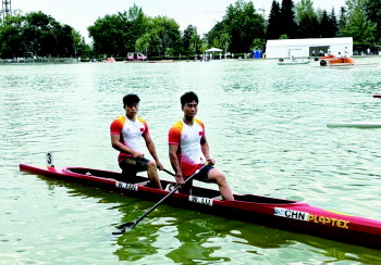 7月21日,在保加利亚举行的2024年世界青年皮划艇锦标赛上,来自德州平原的皮划艇选手范文杰(左一)与队友荣获双人划艇1000米亚军。