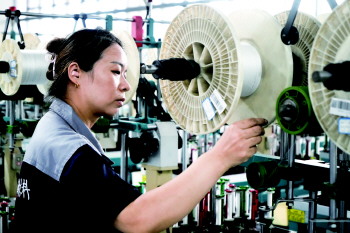 在位于公司三楼的涂层染色车间,自动化染色涂层生产线高速运转,经超声波清洗、颜色涂层、保护涂层、多段式烘干等工序后,一根根成品绳线便成功下线,整个车间看不见污水,闻不到异味。“我们采用的是基于纯净水体系的环保涂层染色体系,具有无毒、无挥发、耐腐蚀等特点,在耐磨、耐久、耐候、耐海水和强度等性能参数上远超国内同行业、同类产品,达到国际知名同行的水平。”李航解释说,涂层技术的高低决定了绳索的强度和韧性。公司利用高分子树脂作为涂层材料,能够轻易渗透进单丝纱线间的缝隙,生产出来的绳线性能提升了40%—100%。