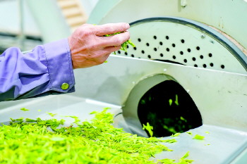 进入圣谷山的智能化生产车间,这里一尘不染,洁净明亮,一条密闭的生产线正在工作中。高建华介绍说,这套生产线投资200多万元,全部由电脑控制,自动称重,进入杀青和碾揉环节,温度、湿度均可以通过计算机设定和调节,与人工炒茶不同,这套设备多了解块和复揉两道工序,而且可以循环烘干,直到炒出最好的绿茶为止。