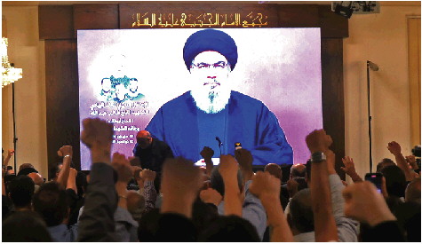 6月19日,黎巴嫩真主党领导人纳斯鲁拉在一场悼念活动上发表电视讲话。 新华社发
