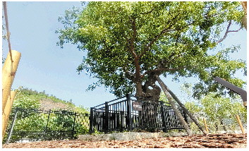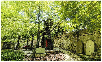 “古树+古井+古碑”主题的文昌古槐园,树龄在480年以上的古槐,前有一眼古井,2012年此处出土古碑7块,后结合现有空间场地,增设防护、休憩设施,改善树木生境,并形成特色古树保护园。