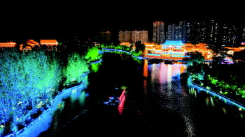 古城曲阜之南,一条旖旎的蓼河逶迤流过。华灯初上,蓼河上空灯光璀璨、光影交织,琼楼玉宇、洒金泼玉,“灯火蓼河里”文商旅综合体项目火爆出圈,成为曲阜又一热门文旅打卡地。