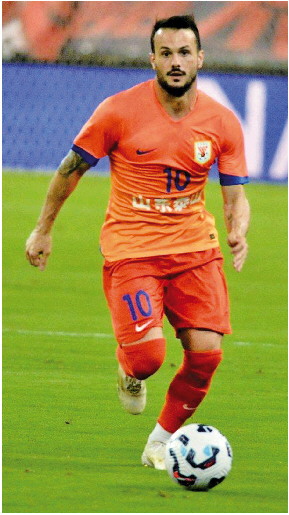 上半场山东泰山队瓦科打进精彩远射,扳平比分。 记者 周青先 摄