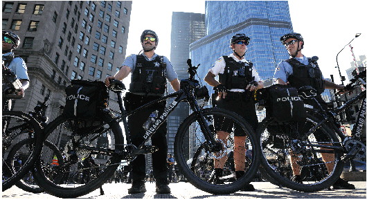 18日,美国芝加哥在民主党全国代表大会开幕前夕爆发示威活动,警方加强安保。 IC photo