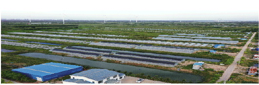 在专家指导下,基地采用生态循环经济模式,池塘养殖南美白对虾,台田养殖蚂蚱,逐渐形成“上虫下渔”立体循环模式。野生芦苇等杂草供给蚂蚱,产出的商品成虫直接销售或加工;蚂蚱的粪便和吃剩的芦苇粉碎发酵,撒到池塘培养藻类浮游生物,用于养殖南美白对虾、鱼类,或还田改良盐碱地;池塘养殖产生的底泥,定期清淤还田改良盐碱地,保障蚂蚱饲草生长,自此,3000多亩沉睡的土地资源被唤醒。