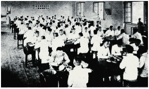 首先是校办食堂。学生人数较多、硬件条件尚可的大学,一般都开办食堂。学生们在学期之初缴纳膳费(即伙食费),由校方采购食材、聘请厨师制作饭食,在学校的公共食堂内就餐。