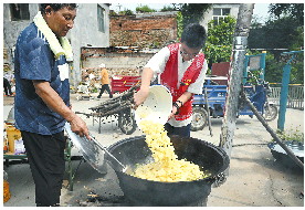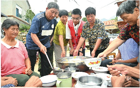 开饭前,李岩松给村里的贫困老人送来慰问品。