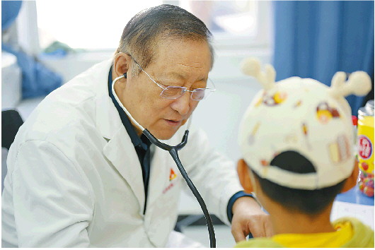 山东省第二人民医院心血管外科首席专家乔彬教授为患儿听诊检查。