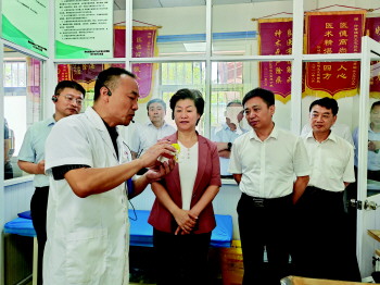 聊城市卫生健康委党组书记、主任,市中医药管理局局长张月莲调研乡村医疗卫生服务能力提质提效三年行动进展情况。
