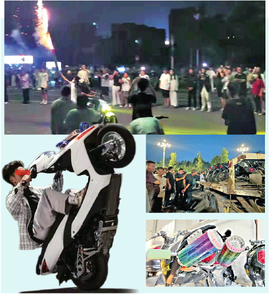 ▲8月29日凌晨两点左右,章丘龙泉大厦西侧,一辆电摩飞驰而过,车上少年燃放“加特林”烟花,七八辆电摩紧随其后。