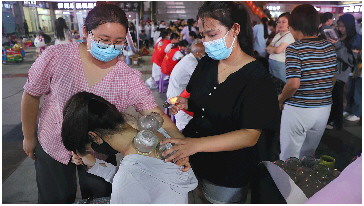 市民体验拔罐。