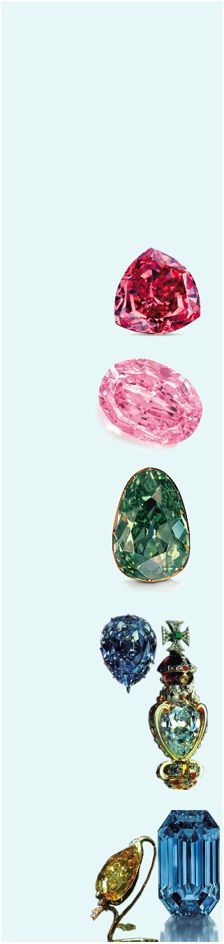 无色透明,几乎是大家鉴别钻石最主要的标准,实际上,除了无色之外,钻石还有黄、蓝、绿、粉、红、褐及黑色等。通常情况下,如果钻石出现黄色,价格会降低,若是粉色、蓝色或红色,则价值飙升,其中,红钻最为昂贵。