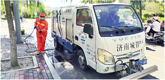 商河城管强化城区人机清扫作业密度,确保道路保洁精细化提升。