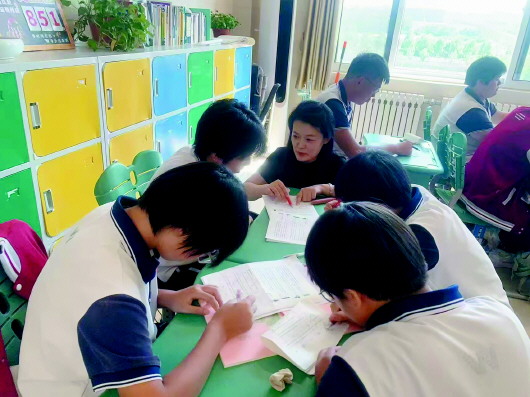 为了满足不同层次学生的学习需求,徐冉采取分层教学的方法,她让不同层次的学生通过换位置聚集到一起,完成不同的学习任务。有的做题,有的听讲,有的进行小组讨论。这样的教学方式,既保证了层次好的学生能够“吃饱”,又让层次稍弱的学生能够“吃透”,真正做到了关注每一个学生。