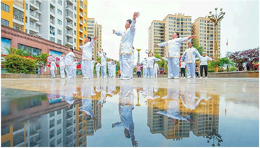 ◥贵州岑巩打造幸福社区,这是社区老年人在锻炼身体。(资料片)