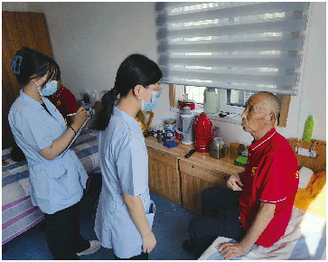 在医疗服务上,回河街道综合养老服务中心成立医务室、诊疗室、输液室、康复室,进一步做好医养结合文章。中心与街道卫生院签订医养结合服务协议,由卫生院派驻街道综合养老服务中心医生和护士,24小时提供医务服务。卫生院责任医生定时给院内老人查体,为每位老人建立健康档案,并根据老人的病情制定康复医疗措施,对于长期用药的老人,定时送药到人,送水服药。医务室上线医保报销系统,老人们足不出院就能享受到医疗报销和常规医疗服务,真正实现医养结合。医护人员定期巡视老人房间,做常规血压、体温等检测等护理工作,及时发现老人患病情况并第一时间送往医院救治。