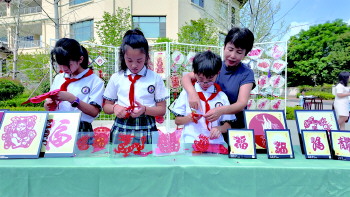 启动仪式现场,解说员边走边介绍:“这是邹城市带来的雅乐吟唱《三迁教子》节目,该节目以南朝刘浚《三迁教子》为词,用传统方式谱曲,旨在传承孟母教子精神。那边还有“抖空竹”、少儿八段锦表演……”一边是用表演的形式生动演绎,一边是用体验的形式加以深化。在传统技艺与非遗项目展示区,实验小学的精美沥粉画、尼山中学的匠心尼山砚制作、实验学校的楷雕艺术以及东方学校的巧手席编等,无一不彰显着中华文化的博大精深与独特魅力。