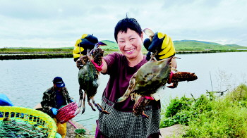 中秋前夕,青岛市即墨区田横镇丁字湾海域万亩蟹田迎来丰收季。今年螃蟹个大鲜肥,单只重量半斤左右,目前主要以收获公蟹为主,母蟹要等到10月下旬开始收获,预计当地今年养殖梭子蟹总产量将达到140万斤。养殖户介绍,因今年海捕蟹产量低,养殖梭子蟹行情一路走高,目前,单只4到6两重的螃蟹收购价每斤从65元到80元不等。