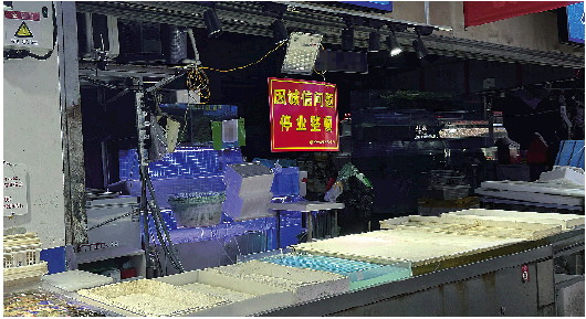 9月20日,济南海鲜大市场内,涉事商户已被市场方挂上“红牌”。