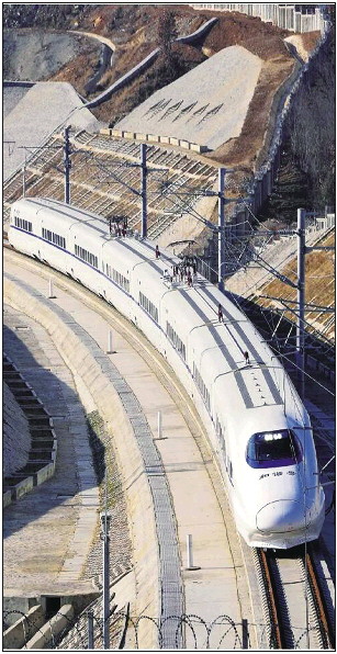 2014年12月19日,一列动车在青荣(青岛-荣成)城际铁路烟台段高速行驶。
