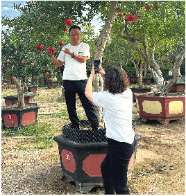 该合作社成立的“盆景养老·峄城共富项目”由合作社以赊销的方式将1-4年“生童子功”石榴盆景赊销给农户,农户按照要求负责养护,再由合作社对养护合格的盆景进行回购,根据盆景品相每盆给予老年农户50-100元的养护费用。赊销给农户的盆景,农户可通过合作社代销或者回购,也可自行销售。“我们长期和广州那边有合作关系,每年都会销售几千盆,盆景平时不需要多大的维护,浇水剪枝就行,像我们村60多岁的老人不方便外出打工,还有一些残疾人群体,在家养护盆景就可以有收入。目前我们这个项目已发展到1万盆左右,单盆销售第一年能卖到100元,第二年挂果之后能卖到200多元。”刘威说。