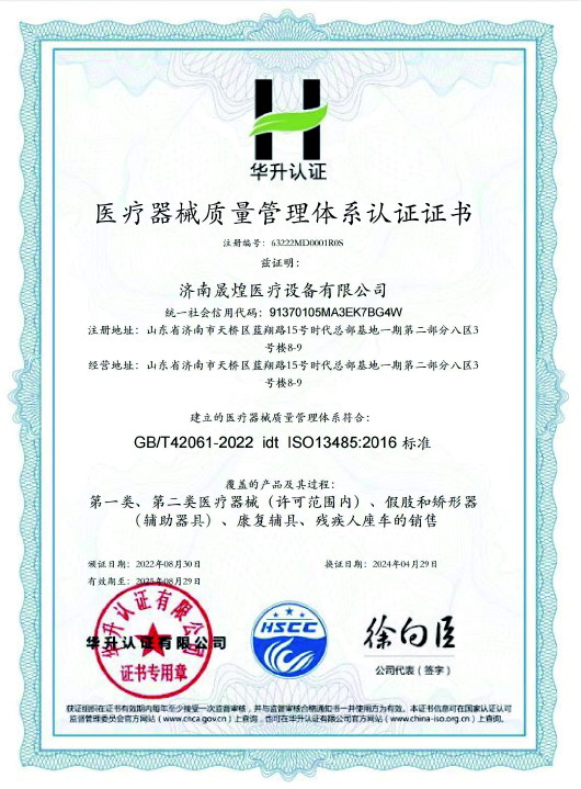 康复辅助器具,亦称康复辅具,是指预防残疾,改善、补偿、替代人体功能和辅助性治疗的产品,包括器具、设备、仪器、技术和软件。随着社会的进步和人们对残疾人权益的重视,康复辅具的重要性逐渐被认可,它在改善、补偿、替代人体功能方面发挥着重要作用,使残疾人能够更好地融入社会,提高了他们的生活及自理能力,辅助他们参与学习、劳动及社会生活的各项能力。济南晟煌医疗设备有限公司是一家专业的假肢矫形器生产与销售企业,近年来致力于假肢矫形器、辅具及康复医疗设备领域的发展,是行业内少数拥有综合性假肢矫形器设计、研发、生产能力的企业之一,是中国康复辅助器具协会会员单位、山东省康复辅助器具协会副会长单位,是山东省康复辅具质量检验鉴定中心定点鉴定单位,是济宁市工伤保险辅助器具配置定点机构、菏泽市工伤保险辅助器具配置定点机构。