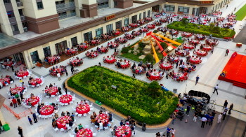 9月17日,恰逢中秋佳节,万物生颐福园“千人做大席 中秋赏明月 和谐一家亲 心随万物生”团圆日活动在万物生·颐福园小区内盛大举行,千余邻里们欢聚小区楼下,共飨美食,共赏表演,把酒言欢,如诗般的精致烟火在秋夜的氤氲中娓娓道来。