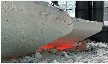 当装满氧化铝粉末的罐车从魏桥产业园开进齐耐生产基地时,一场工业原料的华丽蜕变即将上演。氧化铝“登场”后,将被存入齐耐新材料有限公司生产基地的原料仓中,等待进一步加工。原料通过风送管道直接进入车间,将氧化铝粉送入专用电熔炉中,进入电熔炉的氧化铝粉熔为液态后,冷却重新凝固,一块巨大的白刚玉原料就出炉了。考虑到原料处理的便利性,在整块原料出炉后,将会进入破碎流程,将一整块白刚玉破碎为零散小块,进入精细加工环节。