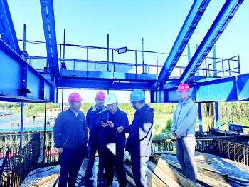 十二工区是济邹高速全线的关键性、控制性标段,承担着济邹高速京杭运河特大桥施工工作。走进济邹高速京杭运河特大桥项目施工现场,只见起重机缓缓将钢筋、模板等生产物料吊起,工人们头戴安全帽,身着工装,在各自的岗位上有条不紊地绑扎钢筋、安装模板,一片繁忙而有序的景象。