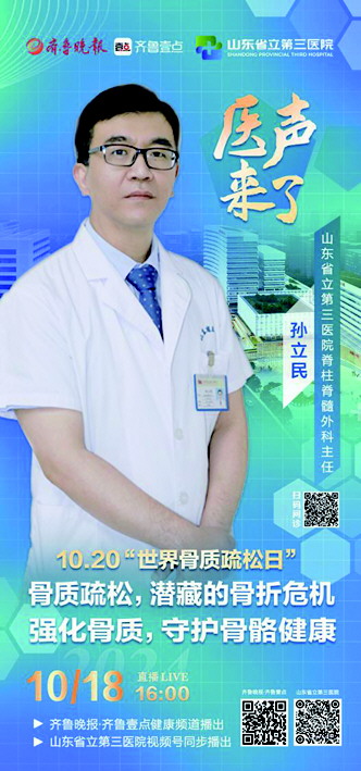 健康直播栏目《医声来了》由齐鲁晚报·齐鲁壹点与山东省立第三医院联合播出,本期直播时间为周五(10月18日)16:00。