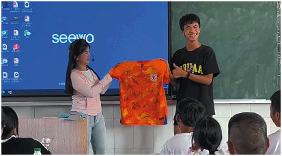 “我关注山东泰山队很久了,球队的实力很强,王大雷、刘洋、费南多(已转会上海申花)是我最喜欢的球员。”他在课间自豪地向各个班级同学展示这件球衣。不仅如此,班上其他喜欢足球的男生对山东泰山队也充满兴趣,孩子们对山东的文化更是充满好奇,常询问老师家乡的情况。