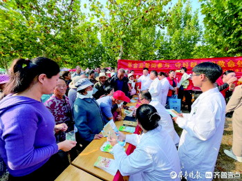 医护人员为群众开展血压测量、健康宣教、就诊建议等志愿服务。