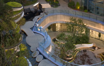 打造全龄段的健康主题乐园。创新中突破传统景观设计的局限,打造满足不同使用功能的10个交互式健康主题乐园。这些区域分别为:泡泡水乐园、萌宠乐园、森林探险游乐园是孩子的童趣天地;妈妈驿站、森养会客厅、山水艺术花园等是针对青年设计的活动主场;颐养花园、静谧花园、光环健身场是专为长者打造的康养世界;不仅如此臻岳还匠心打造了一个户外城市会客厅。
