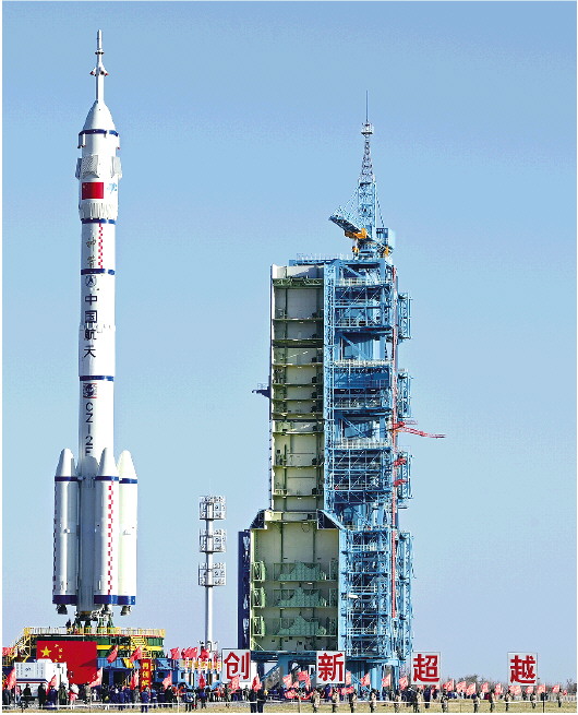 10月22日下午,神舟十九号载人飞船与长征二号F遥十九运载火箭组合体在垂直转运中。 新华社发