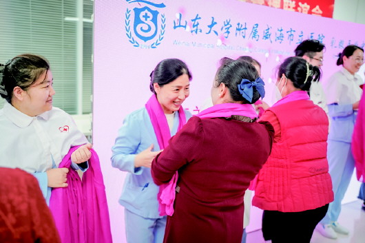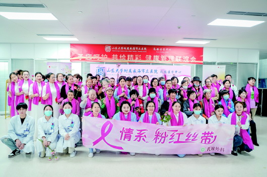 每年10月是“世界乳腺癌防治月”,为更好地普及乳腺健康意识和自我预防保健能力,提高广大女性对乳腺健康的认识,10月21日下午,山东大学附属威海市立医院临港院区四楼举行第十届乳腺癌患者健康管理联谊会,近百名乳腺患者、家属与医护齐聚一堂,相互鼓励、相互支持,共话乳腺健康。