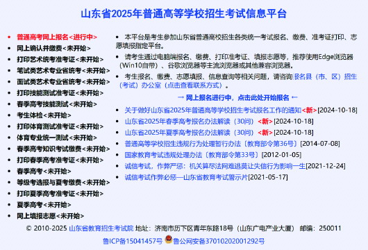 山东2025年普通高考报名分为网上填报信息、网上资格审核、网上确认并缴费等3个阶段。2025年春、夏季高考报名时间基本一致。