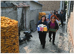 这天是刘桂香老人106岁的生日。亲戚从四面八方专程赶来祝寿。一大早,刘桂香老人住的西屋墙上,就挂上了寿星中堂和祝寿楹联。老人也穿上满是“福”字的新衣服,喜庆又吉祥。“比过年还热闹。”家中女主人、刘桂香的大儿媳妇马桂美说,“过年也没有这么多人”。