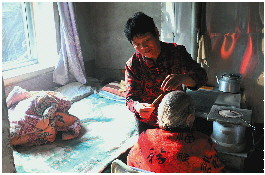 “早上豆浆泡小米煎饼,一个煮鸡蛋。中午、晚上,家里吃什么,婆婆就跟着吃什么,从不挑食。婆婆特别喜欢喝粥,现在每天中午晚上都要喝两碗。”马桂美介绍,婆婆不大喜欢吃甜食。过去,婆婆还有点血压高,现在竟然好了,平时也很少到卫生室拿药。现在,老人除了耳聋,走路不便外,穿衣吃饭还需要别人帮忙,其他身体指标都不错。
