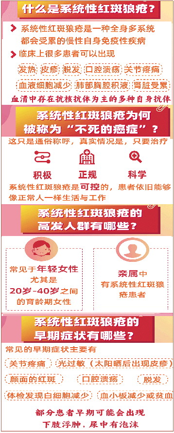 侯岩峰介绍,随着医学进步和治疗方案的优化,系统性红斑狼疮患者的生存状况和生活质量已有很大改善。
