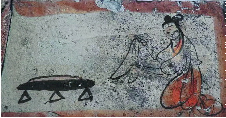 甘肃嘉峪关魏晋墓出土的砖画厨娘煎饼图。