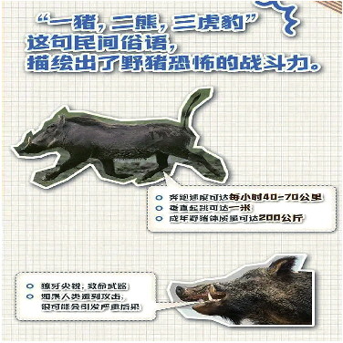 杨朝霞称,野猪的攻击力十分强大,主要与体型、速度、力量和防御能力等多方面因素有关。
